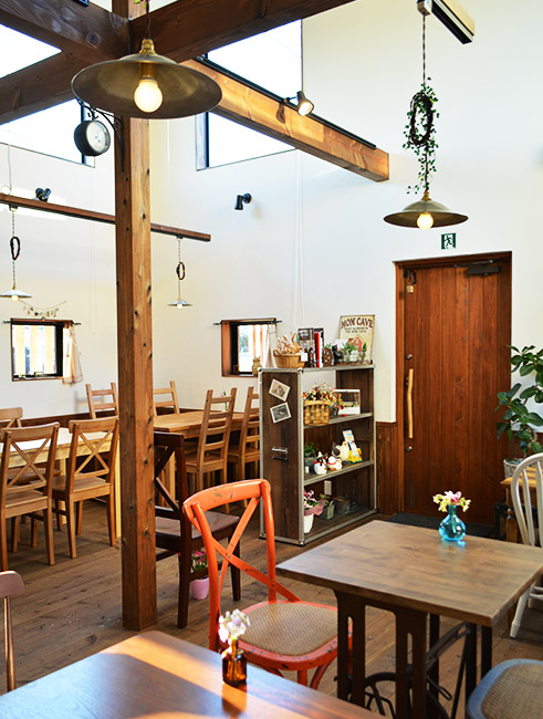 つくばの南端にある隠れ家的カフェ。外国の田舎をイメージした空間は、こだわりの小物や雑貨に囲まれて、あたたかい雰囲気です。
